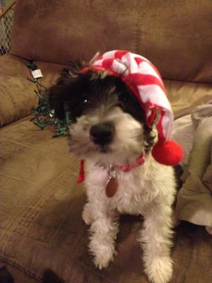 Marleigh is a parti-colored mini schnauzer and was born on July 25th and has 3 other older siblings - Kimber Mae, a chocolate lab, Izzy Mae, a mini schnoodle, and Moe the cat.