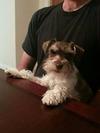 We got our Mini Blaze when he was 8 weeks old. He is a liver pepper Parti Schnauzer. We waited for his litter to get a special dog with lots of colorings! He has been a wonderful addition to our home. We can't imagine being without him.