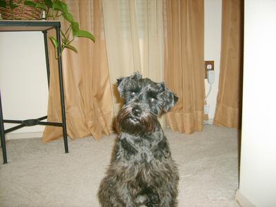 Hi my name is Cookie James, I am 2 years old. I live with Mommy, Daddy and my big brother Tug, he is a Schnauzer too. He is my best friend now, he is 9 years old, when I first came to the family I got on his nerves a little. I like to play, a lot, he likes to sleep, a lot! I use to live with my doggie Mommy, Daddy and brothers and sisters, I loved them too.